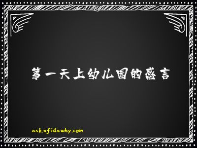 • 宝贝这是你第一天离开我的身边自己去到一个陌生的环境,跟自己的同龄人玩耍接触,希望你可以适应新的环境,开心快乐的成长,不管爸爸妈妈是否能够在你身边陪伴,我们都希望你可以自己勇敢的面对以后的状况!爸爸妈妈爱你!