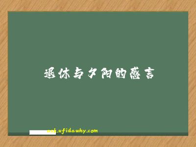 退休与夕阳的感言2021-03-31 14:51:14 阅读 322 次 评论 0 条• 但得夕阳无限好,何须惆怅近黄昏。本文地址:https://yulu.obsky.com/mingju/298459.html版权声明:本文收集于网络,如有侵权请联系删除,欢迎分享本文,转载请保留出处! PREVIOUS:10周年的感言NEXT:关于惊喜的感言文章导航